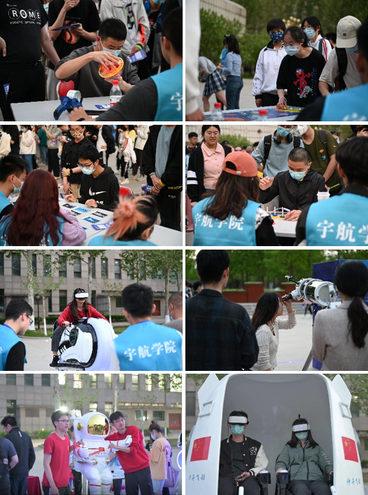 为迎接第七个“中国航天日”,活动当天还在良乡校区行政楼前举办了载人航天30周年成就展和“航天嘉年华”活动,寓教于乐,智趣结合,沉浸式的互动体验吸引了约600余名师生参观体验。