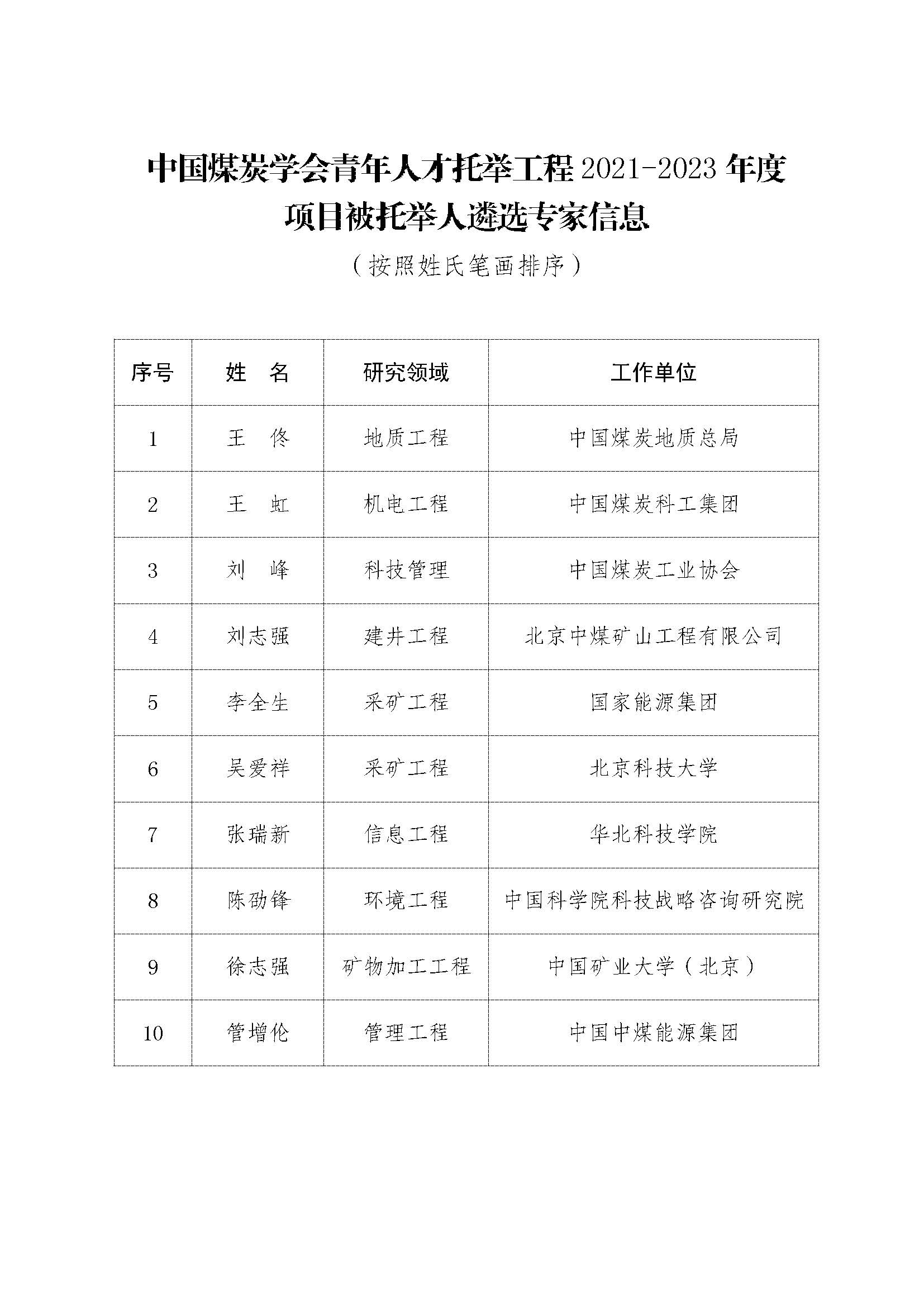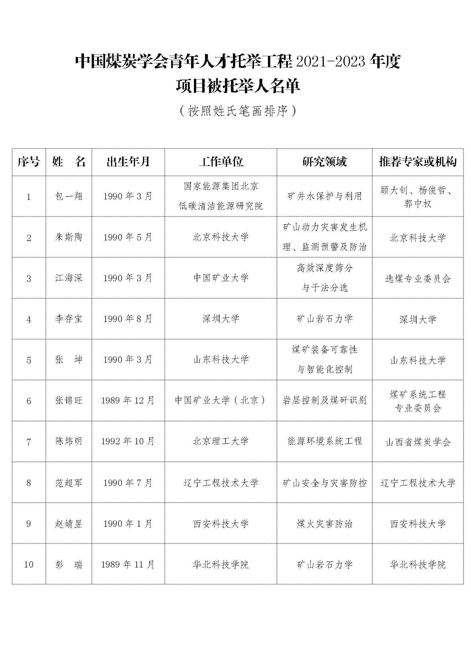 按照《中国科协青年人才托举工程实施管理细则(修订)》(科协创函会字〔2021〕30号)有关要求,根据《中国科协青年人才托举工程管理办法》和《中国煤炭学会青年人才托举工程管理办法(暂行)》有关规定,通过学会分支机构、省级煤炭学会、理事会员单位以及专家实名等多种渠道推荐,经过资格审查、盲评,于2022年1月24日,中国煤炭学会召开青年人才托举工程2021-2023年度(第七届)项目被托举人遴选评审会,评选出包一翔等10名同志为中国煤炭学会第七届中国科协青年人才托举工程项目被托举人。